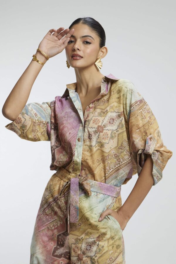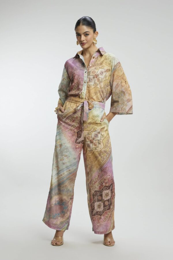This Abstract Print Coord Set features vibrant, artistic patterns, crafted on soft, breathable fabric for all-day comfort. Designed with delicate stone buttons for a subtle touch of elegance, this coordinated outfit effortlessly blends cultural richness with contemporary style — perfect for festive gatherings, brunch dates, or statement everyday wear.