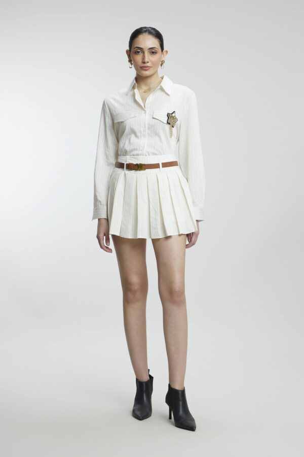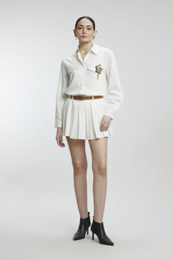 Our striped co-ord skirt set complete with a chic belt and a detachable star brooch, is perfect for turning heads with ease. Comfortable, versatile, and full of personality, this set is made for making a statement – day or night.