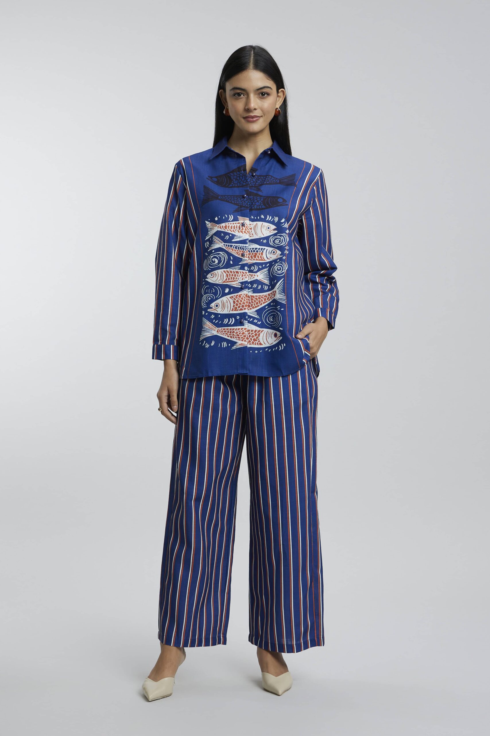 Dive into laid-back charm with this Fish Print Linen Co-ord Set — a playful pairing inspired by sunny shores and salty air. Made from breathable, lightweight linen and featuring quirky fish motifs, this set is perfect for beach days, market strolls, or simply chilling like it’s vacation. The relaxed fit keeps things cool, while the print adds a splash of fun to your wardrobe.
