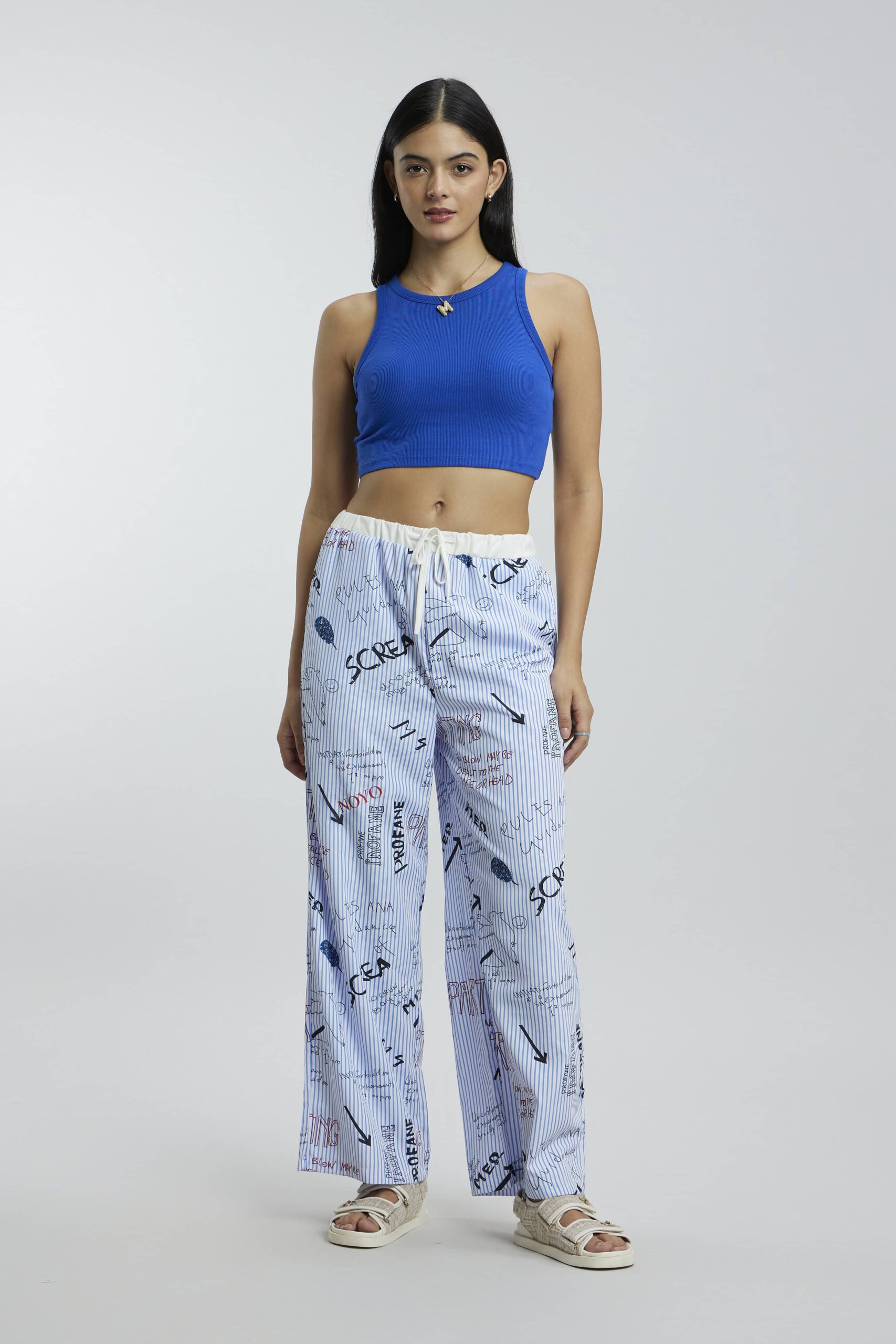 Our stripe pants with funky words are all about adding boldness and personality to your look.Whether you’re out and about or just relaxing, these pants are guaranteed to turn heads and spark conversations.