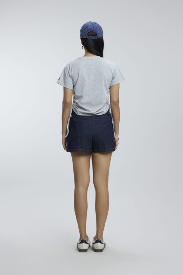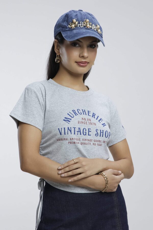 Step up your casual style with this trendy Tee featuring bold wordings on the front and stylish side string details, ruche it up for a cropped vibe or keep it loose for a laid-back finish. Pair it with your favorite jeans, shorts, or joggers for an instant street-style upgrade.